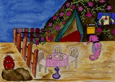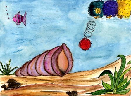 „Nein, ich schlafe noch.“, gähnte Quaddl und lachte. Quiddl war über einen Ball geplumpst. Quaddl wollte es sich so richtig gemütlich in seiner Muschel machen, als es ihm wieder einfiel.