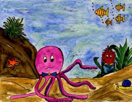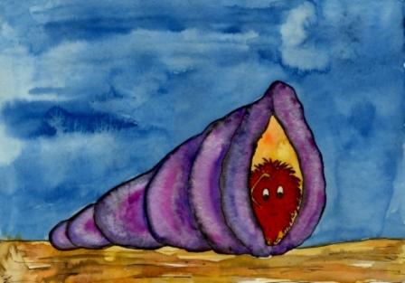 „Ach so“, brummte es da zurück. „Es ist nur ein Muschelwuschel. Ich bin Mollyor. Ich habe gerade ausprobiert, ob meine Tinte noch schön lila färbt.“