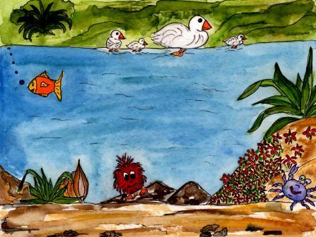„Meine Güte“, stöhnte Lily. „Der Teich ist so groß, das kann ich nun wirklich nicht wissen!“, und ließ Quaddl einfach stehen ohne ihm überhaupt ein kleines bisschen zu helfen.