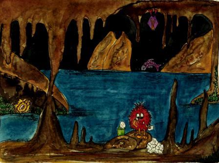 Als Quaddl in die Höhlen schwamm wurde es ihm unheimlich. In der Höhle war es sehr dunkel. Das Wasser war hier viel kälter, sodass Quaddl anfing zu frieren. Quaddl konnte sich nicht vorstellen, dass seine Familie hierher ziehen würde. Er rief einmal zaghaft: „Hallo, ist hier jemand?“