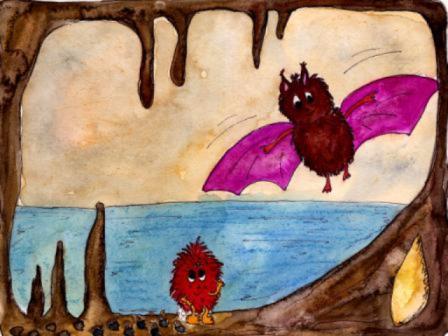Quaddl schloss erschöpft die Augen, ließ sich im Wasser treiben und trieb langsam nach oben. Da spürte er auf einmal, dass er an der Luft war. Hier in der Höhle war es aber genauso dunkel wie unter Wasser. Quaddl war müde und vor allem sehr traurig. Er schwamm zum Ufer, setzte sich auf einen Stein und langsam kullerten ihm die ersten Tränen über die Backen.