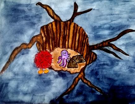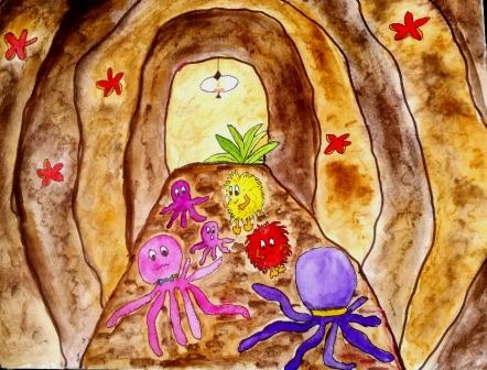 Langsam schwammen Quaddl und Quiddl mit Mollyor zu seiner Höhle, wo schon Maryllis, seine Frau, auf ihn wartete.