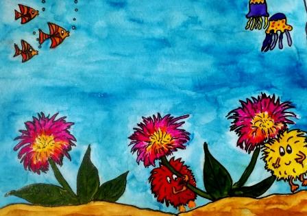 Quiddl schwamm schnell. Ihr war unheimlich zu Mute, so alleine im Wasser. Sie machte kurz bei der zweiten Leuchtfeuerblume eine Pause, um Luft zu schnappen. Quiddl suchte schon die nächste Blume als Orientierung. Aber was war denn da? Da leuchtete es auf einmal ganz hell.