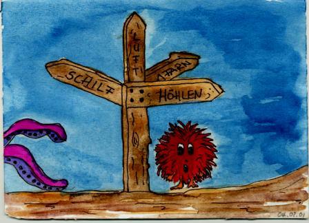 Hier leben Muschelwuschels, Seepferdchen, Delphine, Schildkröten, Maulwürfe, Tintenfische und noch viele andere Mitbewohner meistens friedlich miteinander. Es sei denn, Quiddl, mit ihren quietschgelben Wuscheln, und Quaddl, das knallrote, flauschige Wollknäul, machten sich auf den Weg auf einen ihrer Streifzüge zur Seerosenbucht, in den Lilienteich oder Wanderungen zum Bauernhof.